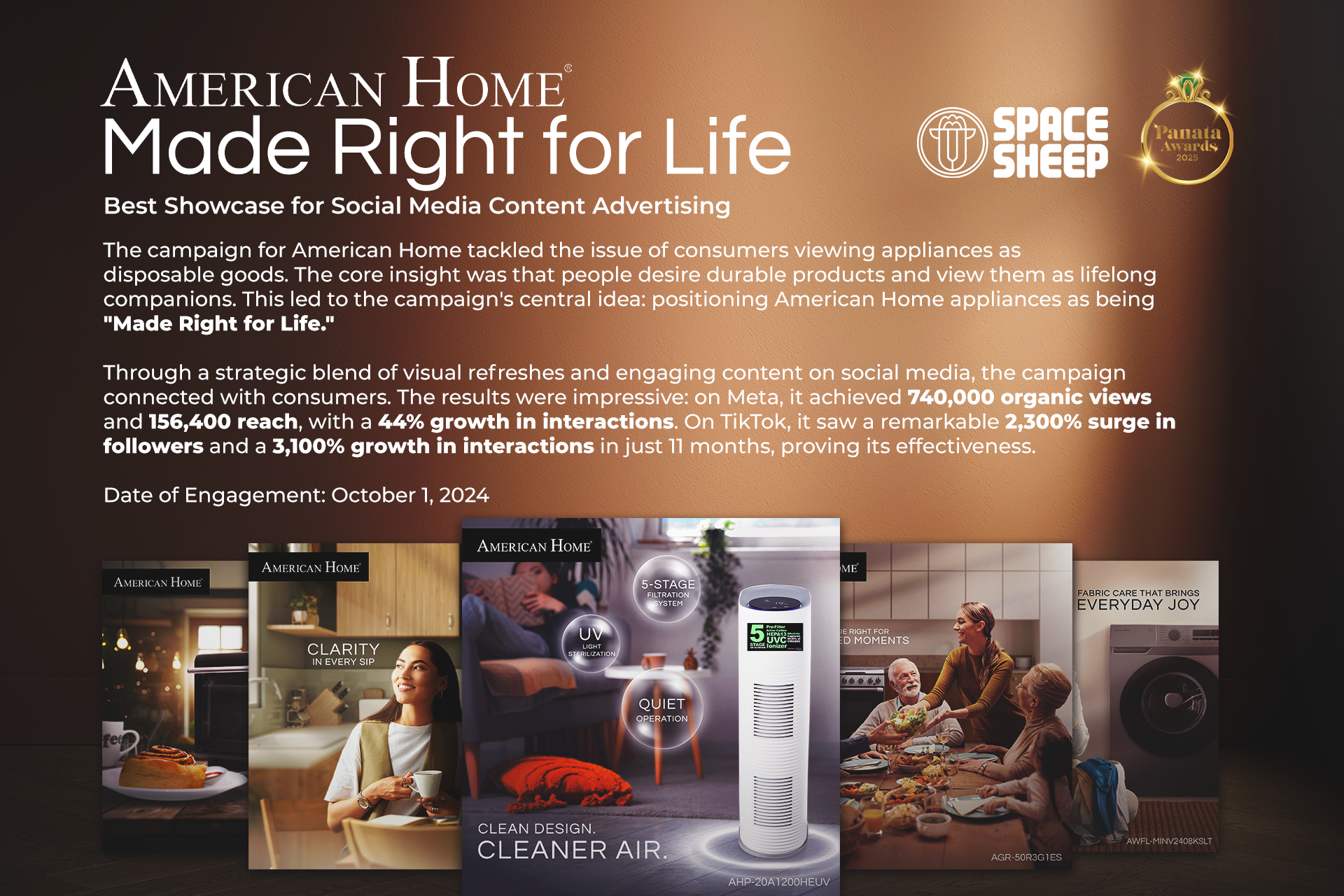 American Home is a trusted appliance brand with a strong presence in the Philippines. From the beginning, it has consistently championed one core message: longevity. While many new appliance brands have entered the market over the years, American Home has stood firm in delivering lifelong quality. Space Sheep Media Lab Inc. leveraged this enduring commitment to create a social media campaign centered on the idea of appliances as lifelong companions.